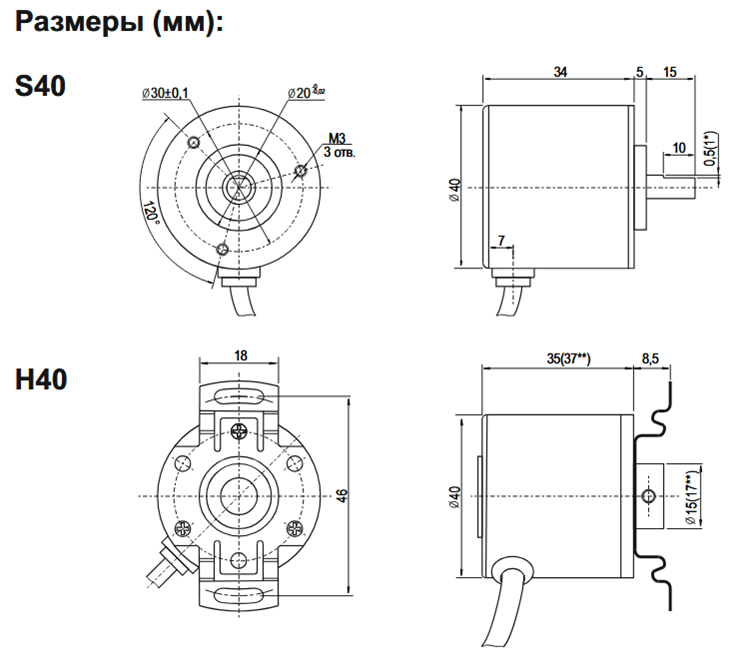 H40 - размер для энкодера с полым валом 12 мм.